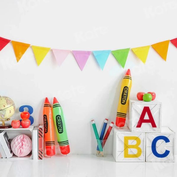 Bring out the vibrant creativity with our Crayon Craze backdrop! This playful yet elegant scene features crisp white crates, giant balloon crayons, and a cheerful banner, creating the perfect setting for little artists and learners.